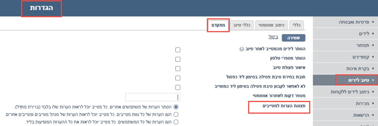 *למשתמשים מסוג מטייבים יופיעו הערות בהתאם להגדרה במסך הגדרות > טיוב לידים > מתקדם > תצוגת הערות למטייבים.