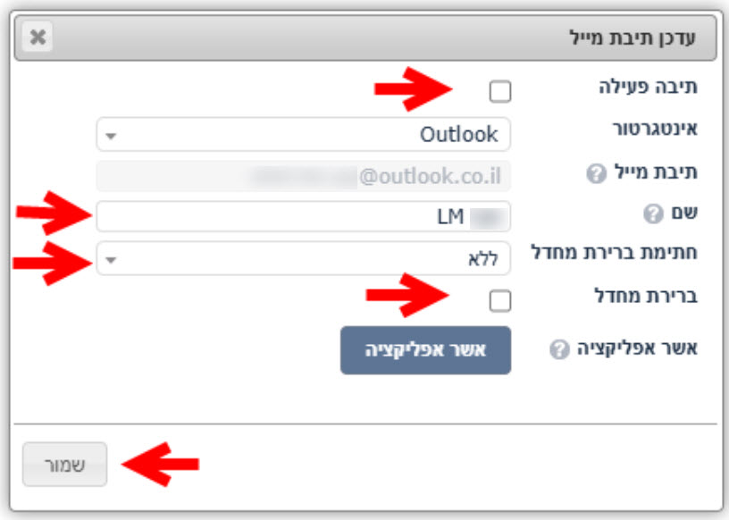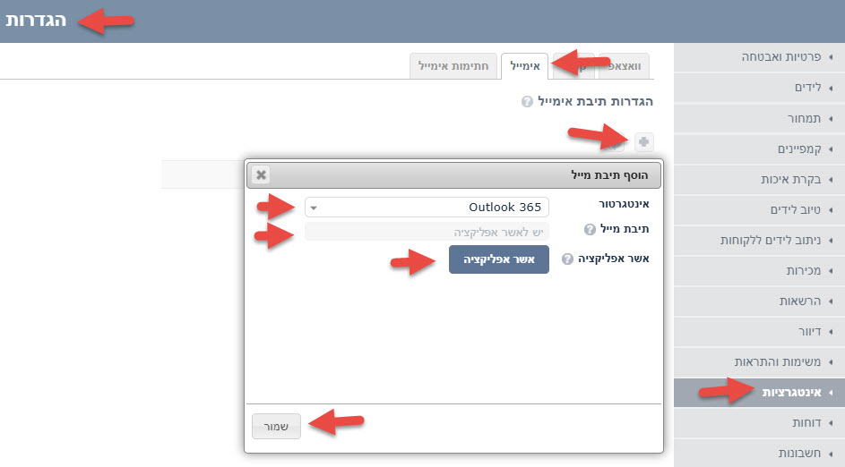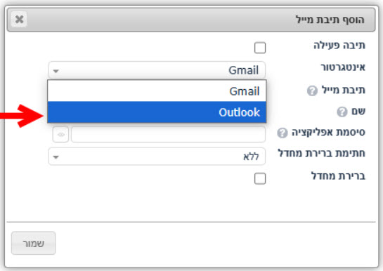 >> לחצו כאן למעבר להסבר הגדרת אינטגרציה לתיבת אאוטלוק (Outlook)