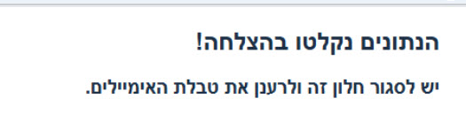 - לאחר הזנת כל הנתונים מתקבלת הודעה