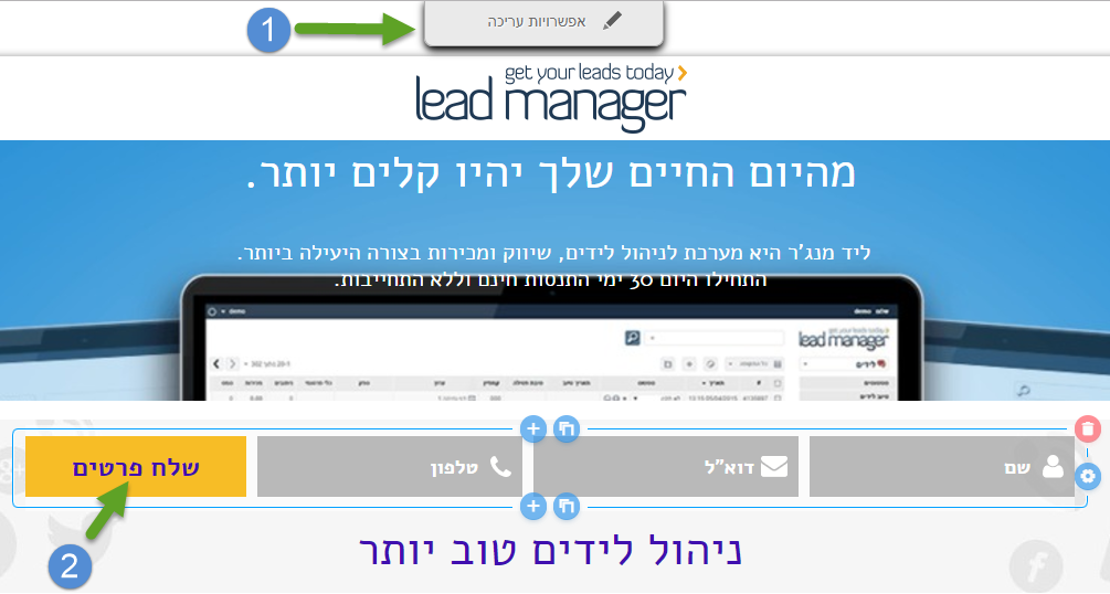 - היכנסו לממשק עריכת דף הנחיתה שלכם במערכת רב מסר.